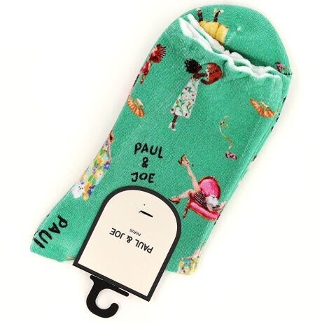 ポール & ジョー Sクルー丈ソックス ガール&キャットプリント