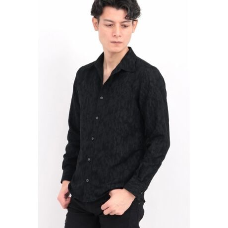 [型番:2002047]【DESIGN】 細やかなムラのジャカードジャカード織柄が上品な印象を添えてくれる長袖レギュラーカラーシャツ。 清涼感のある素材感が春夏スタイルにオススメの一着となっています。 【TEXTILE】 ロック(岩肌)のような柄をジャカードで織り上げ、整理の段階で縮めることで繊細な表面感と少しのストレッチ性を持たせています。 肌への接地面が少なく、カリッとした風合いが清涼感のある素材です。モデル身長 185cm:着用サイズ LL