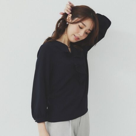 フリルバーデザインブラウス【洗濯機洗い可イージーアイロン防シワ】
