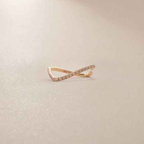カーブしたラインのスクエアにダイヤモンドが施されたデザインのイヤーカフ。