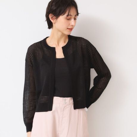 スクエアチェック柄のシアーボレロカーディガン。