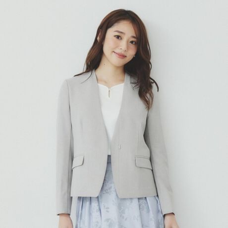ストレッチノーカラージャケットセットアップ対応可【洗えるイージーアイロン抗ピル】
