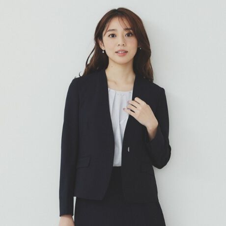 ストレッチノーカラージャケットセットアップ対応可【洗えるイージーアイロン抗ピル】