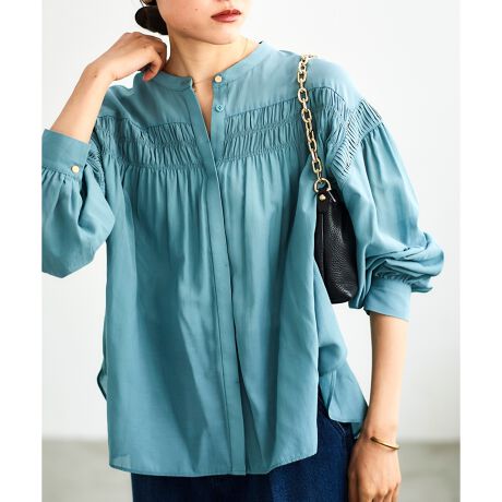 シャーリングが程よく甘さをプラスしたブラウス。