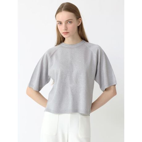 レーヨンの上品な光沢を持つ糸に、繊細なラメ糸を編み込んだアイテム。ナイロンやポリエステル混にすることで適度なハリを与え、シワになりにくい生地に仕上げました。細番手の糸を使用し、滑らかでさらりとした編地は美しいニュアンスの質感とドレープを演出します。