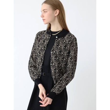 奥行のある柄行きと独特な雰囲気がコーディネートにアクセントを加えるジャガードニットカーディガン。細やかな線のタッチがジャガード柄をそれぞれ異なる表情に仕上げました。全体に編み立てた柄もバイカラーに抑えることでシックかつモダンなムードを纏う一着。コンパクトなサイジングでワンピースなどの羽織りとしてはもちろん、ボタンを閉じてトップスとしてのスタイルも一枚で様見えします。
