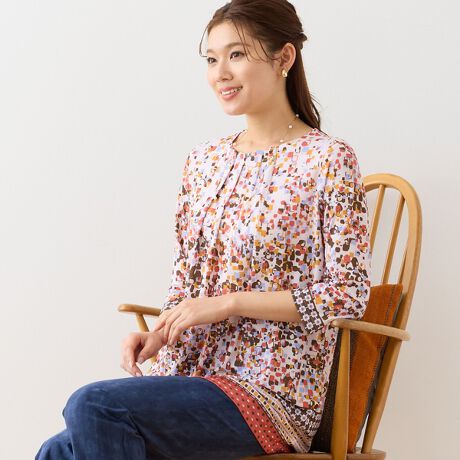 一枚で着映えする柄トップス。