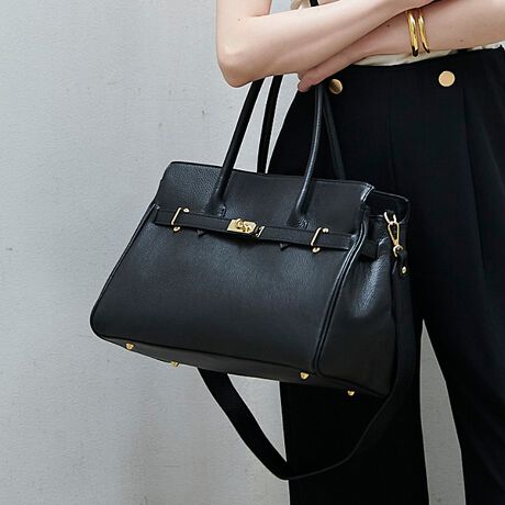 高級感のある上品なレザーを使用した使い勝手の良い横型トートバッグ。