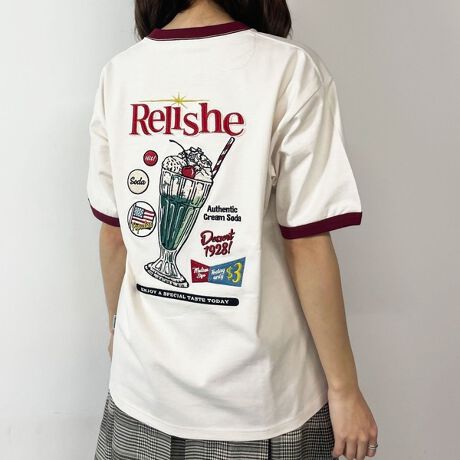 大人気のクリームソーダ刺繍のTシャツがリンガー配色になって登場!