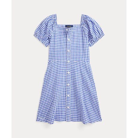 ウォッシュ加工で着心地の良さをアップしたリネンとコットンのドレス。スクエアネックライン、ボタン付き前立て、ギンガムモチーフでキュートなアメリカーナルックを演出。・フィット & フレアのシルエット・スクエアネックライン / ボタン付き前立て・半袖のバルーンスリーブ、伸縮性のあるアームバンド・サイドシームポケット / ウエスト背面にダーツ・右裾にPoloの刺繍※商品の色味は、光のあたり具合など諸条件により色感が多少異なって見える場合がございますので予めご了承下さい。 【素材】・本体:麻 55%、綿 45% 装飾部分を除く【生産国】ベトナム