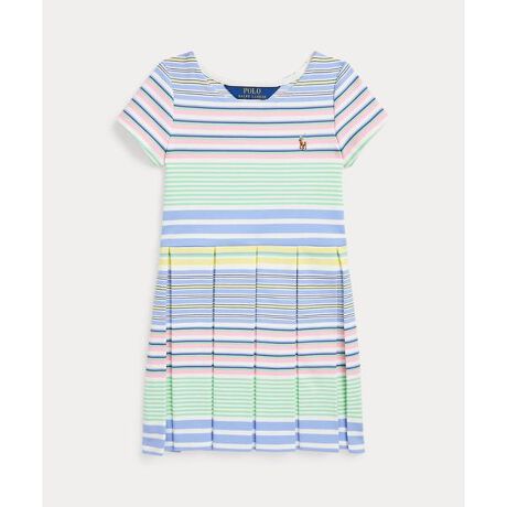 ストレッチを効かせたなめらかなポンチ生地で仕立てたドレス。パステルカラーのストライプ、フィット & フレアのシルエット、シグネチャーのマルチカラーのポニー刺繍を組み合わせたアイテム。・フィット & フレアのシルエット・左胸にマルチカラーのシグネチャーのポニー刺繍・ラウンドネック・キャップスリーブ・プリーツスカート※商品の色味は、光のあたり具合など諸条件により色感が多少異なって見える場合がございますので予めご了承下さい。※注意:柄の配置は、商品によって異なります。 【素材】・本体:ポリエステル 69%、レーヨン 29%、ポリウレタン 2% 装飾部分を除く【生産国】中国