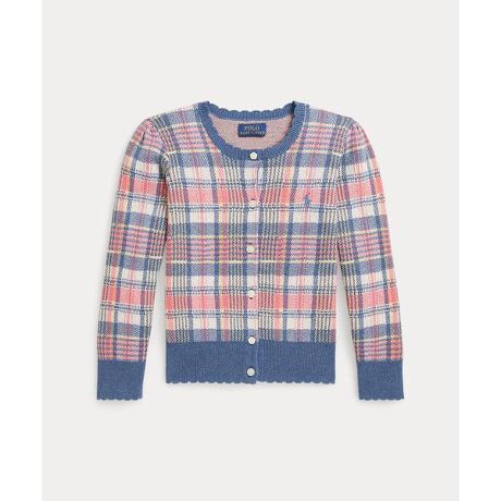 (ガールズ 2才〜6才)チェック スカラップドトリム コットン カーディガン