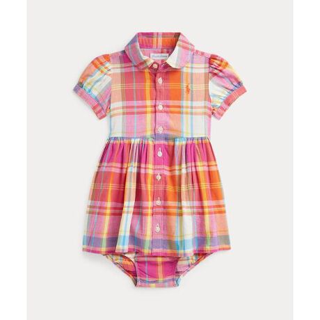 オーセンティックなコットンマドラスで仕立てたドレス。クラシックなフィット & フレアのシルエットと鮮やかなチェックモチーフが特徴。・フィット & フレアのシルエット・左胸にシグネチャーのポニー刺繍・クラブカラー / ボタン付き前立て・半袖、ボタン付きバレルアームバンド / シャーリング入りのウエスト・お揃いのブルマー付き※商品の色味は、光のあたり具合など諸条件により色感が多少異なって見える場合がございますので予めご了承下さい。※注意:柄の配置は、商品によって異なります。 【素材】・本体:綿 100% 装飾部分を除く【生産国】インド