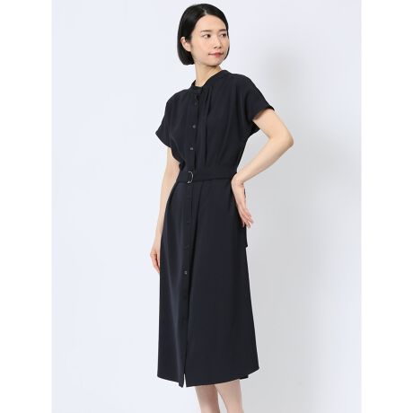 上品に垢抜ける、ロング丈のワンピースです。どちらを前にしても着用可能な前後2WAY仕様、首元をスッキリ見せてくれるバンドカラー、ウエストを絞れる共生地のベルトがポイントになっています。ワンピースとしても羽織りとしても楽しめる、着回し力の高いアイテムです。