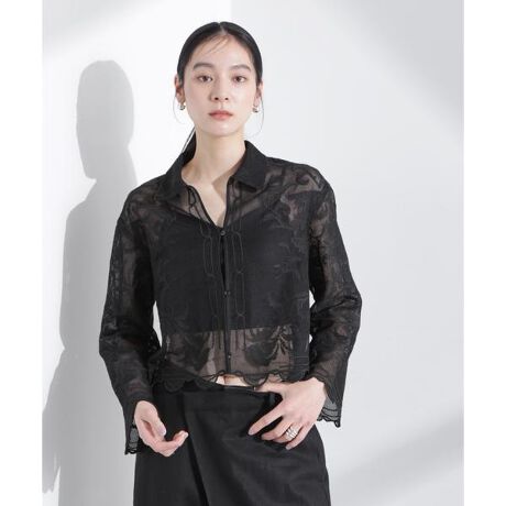 ビンテージ感が香る、ふっくらとした大ぶりの刺繍レース柄シャツ。スタイルアップ効果が期待できるトレンドのクロップド丈で、きちんと感があるのでON/OFFで重宝しそう。