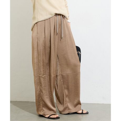 サテン素材で落ち感があるバルーンパンツ。