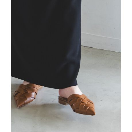 踵が見えるラフなサンダルながらも、ポインテッドトゥでエレガントな仕上がり。