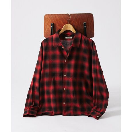 コットン/レーヨン オンブレチェックシャツ