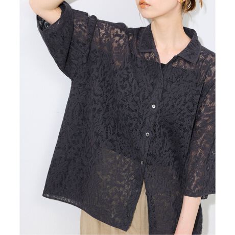 ・軽やかで程よい透け感が楽しめる大人なレースを取り入れた開襟ニットシャツ!