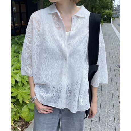 ・軽やかで程よい透け感が楽しめる大人なレースを取り入れた開襟ニットシャツ!