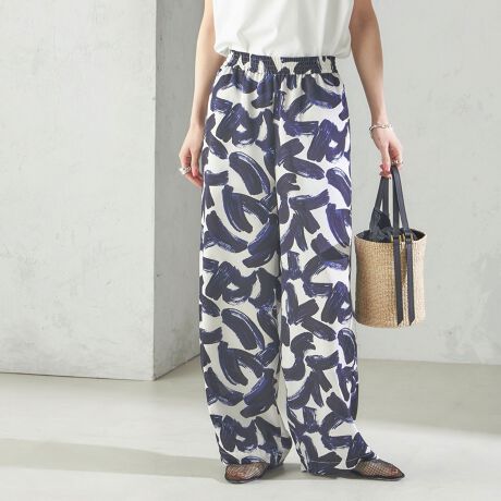 シンプルになりがちな夏のワードローブにこのプリントイージーパンツをプラスすれば一気に華やかな印象に。