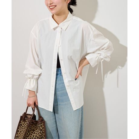 ◆袖口のリボンがポイントのドロストスリーブシャツ