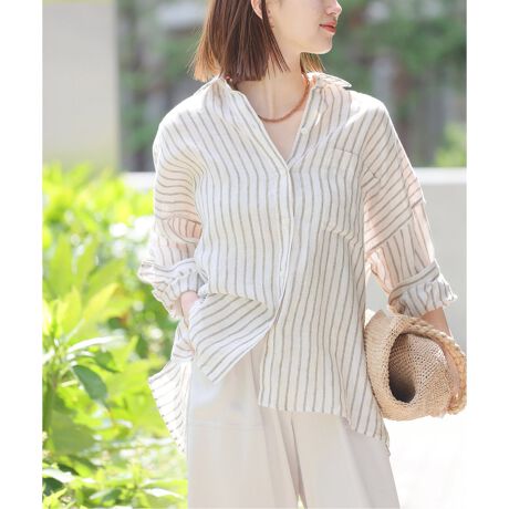 手洗い可 / No.66ストライプフレンチリネンシャツ