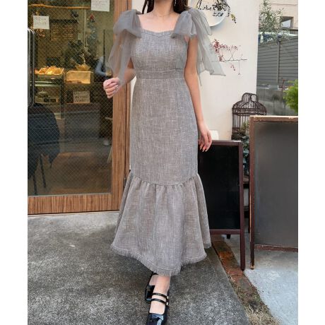 チュールリボンツイードマーメイドワンピース