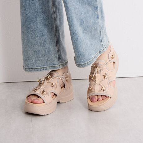スポーティー×フェミニンをテーマに、スタイルアップできるインヒールやボリュームソール、華やかな素材、ニュアンスカラーを取りいれたデザインがポイント。