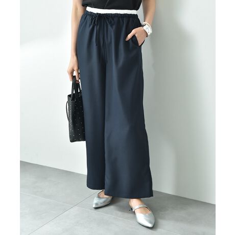 カジュアルなスタイルになりがちなこれからのシーズンに活躍する大人のパンツ!ウエストはレイヤード風のディテールでアクセントをプラスしました。さらりと肌触りの良い素材で、シワになりにくくきれいなシルエットがキープできる優れものです。