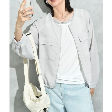 程よい透け感で大人の女性が着まわせるメッシュブルゾン。今季トレンドのシアー感で旬なスタイルが完成します。袖口はきちんと感のあるカフス仕様なのでオフィススタイルにもぴったりです。裾はドロスト仕様になっていてシルエットアレンジも可能です。スポーティーな印象の素材ですが、すっきりしたノーカラーで綺麗目に着用していただけます。