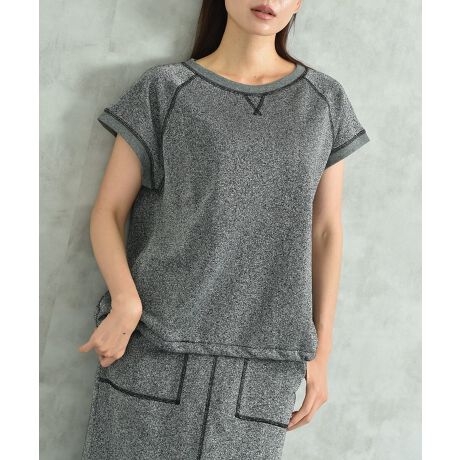 カジュアルな印象の裏毛素材にラメを入れ、キレイ目な商品に仕上げました。Tシャツ感覚で着まわせ、程よくゆったりシルエットですっきりしたボトムスに合わせたスタイルがお勧め◎裾のドロストで絞りが調節でき、シルエットのアレンジが可能でコーディネートの幅が広がります。