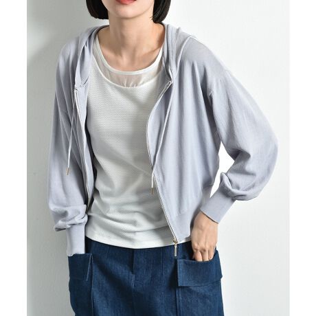 UV・接触冷感・手洗い可能とこれから夏に向けて活躍する素材を使用したニットパーカー。さらりとした肌さわりで柔らかな素材を使用しているため動きやすく、気になる腕回りもラクに着回せます。