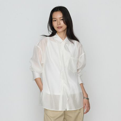 透け感と前のフリルが雰囲気のあるシャツです。
