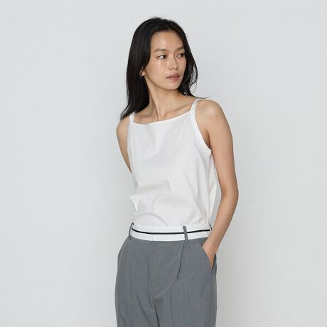シャープできれいめに仕上げることで、ジャケットの下に着てもかっこよく決まるキャミソールです。