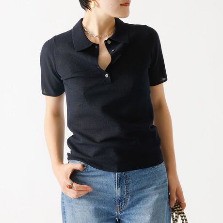 ちらちらした糸の表面感、乾いたマットな質感が夏らしい表情のシアーポロニット。