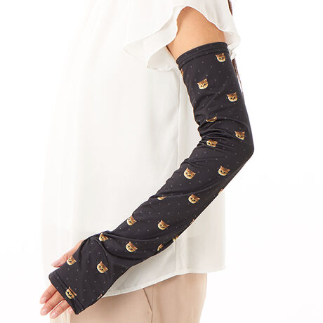 冷感素材のアームカバー。ポール&ジョーのアイコンねこ、ヌネットの総柄。UVカット付き。