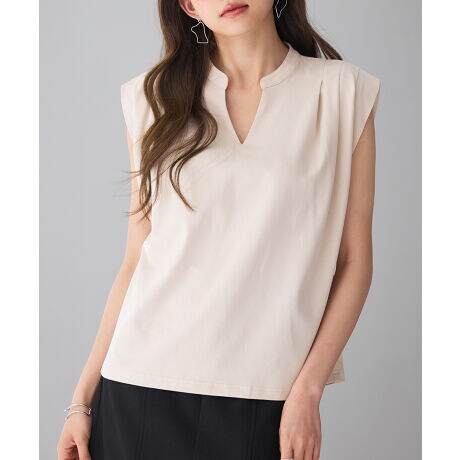 着回し力抜群のきれいめシンプルなノースリーブのカットソートップス。