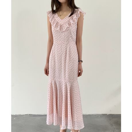 ドットシフォンロング丈ワンピース