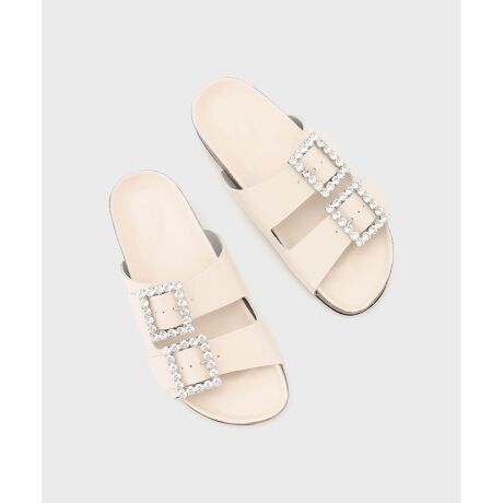 カジュアルなベルトサンダルを女性らしくアップデートしたCORSO ROMA,9の新作サンダル。アッパーの大きなバックルにはビジューが敷き詰められ、歩く度にキラキラと煌めく姿が美しい一足です。フラットならではの楽な履き心地とヘルシーな印象で履いていただけるデザインが、夏のお出かけスタイルにぴったり。エフォートレスなワンピースを引き締めたり、パンツでスタイリッシュに纏めたり、ワードローブの主力としてご活躍いただけるアイテムです。