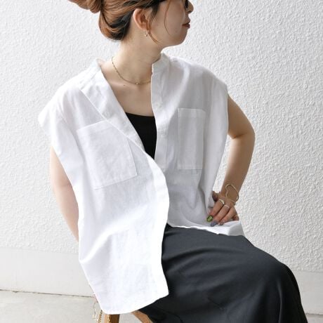 あえてボタンを大胆に開けて抜け感を出しながら、キャミやタンクとのレイヤードも楽しむのもおすすめです。