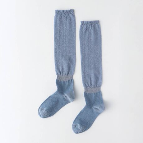 ラメ糸使用、履き口からくるぶしまでシアーのソックス。