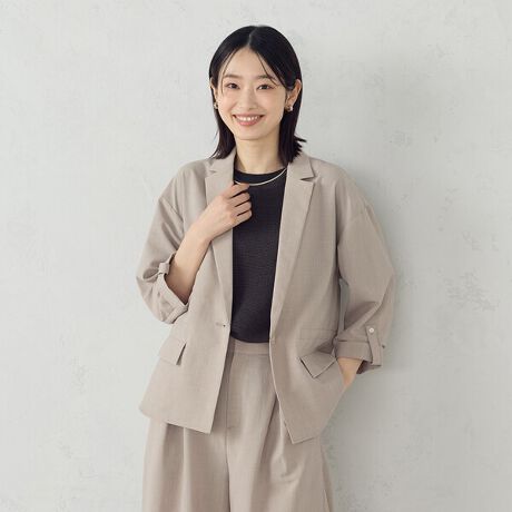 シワになりにくいイージーケアな麻調ポリエステル素材です。
