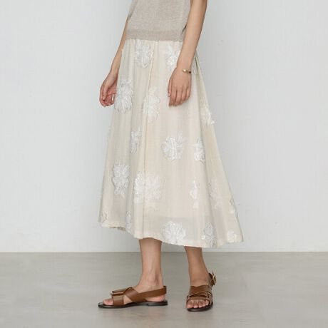 ナチュラルな印象の麻のカットジャカードでつくる、フェミニンなフレアスカートです。