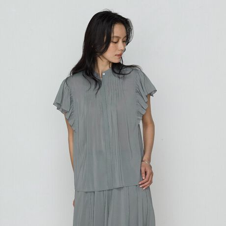 たっぷりあしらった繊細なピンタックとフレアスリーブが華やかで高級感溢れるフレアスリーブタックブラウスです。