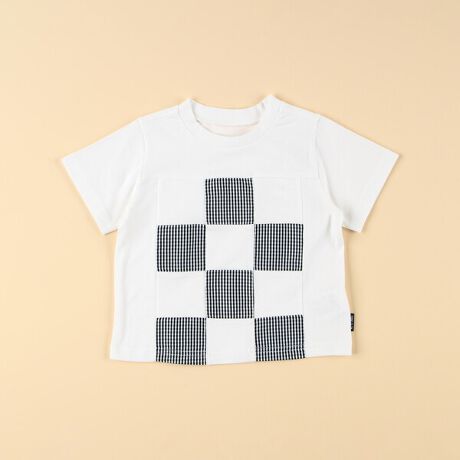 ギンガムチェックと天竺を切り替えたパッチワーク半袖Tシャツです。