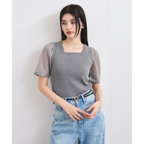 ・ふんわりとしたシアータックスリーブと透けない編地の身頃が大人フェミニンの一枚で様になるニットプルオーバー。