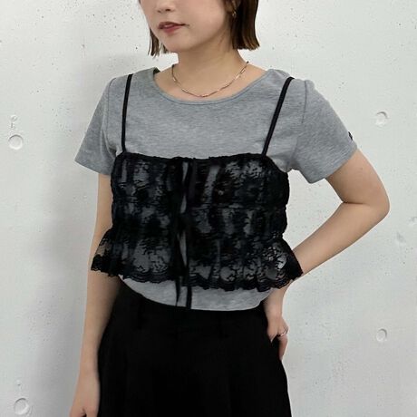 テレコリブの半袖カットソー。