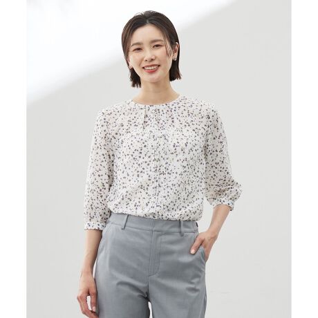 春~夏まで活躍!小花と幾何の中間柄が目を引くクルーネックブラウス