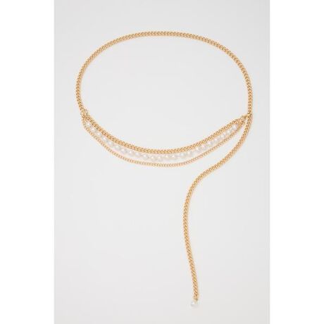 【3種類の異なるチェーンとフェイクパールチェーンを組み合わせたチェーンベルト】■ポイントチェーンとフェイクパールチェーンを組み合わせた、華やかなデザインが魅力のベルト。チェーンは全て取り外し可能にしているので、さまざまなスタイリングに対応します。パンツスタイルにさりげないアクセントとして合わせたり、ワンピースやジャケットの上から華やかさをプラスするアレンジもおすすめ。ジャストウエストで素肌と合わせるコーディネートも旬な装いが叶います。シルバーとゴールドの2色をご用意しました。■ディテール垂れ下がるようにつけることができ、取り入れるだけで、旬な装いに。■スタイリングデニムにはもちろん、フレアスカートやワンピースなどのウエストマークに大活躍。合わせるアイテムでチェーンを多連にしたり、シングルにしたり、パールを取り外すことも可能。■商品のお気に入り登録お気に入りアイテムの再入荷・在庫1点などの通知を受け取ることができます。[注意事項]※画像の商品はサンプルです。実際の商品と仕様、加工が若干異なる場合があります。※画像の商品は光の照射や角度、お使いのモニター環境により、実物と色味が異なる場合がございます。※着用、お取り扱いの際は、アテンションタグをご確認ください。デザイン性を重視した繊細な商品のため、極度な力が加わると破損することがありますのでお取り扱いには十分にご注意下さい。皮膚に痒みや刺激を感じた際は使用をお止め下さい。